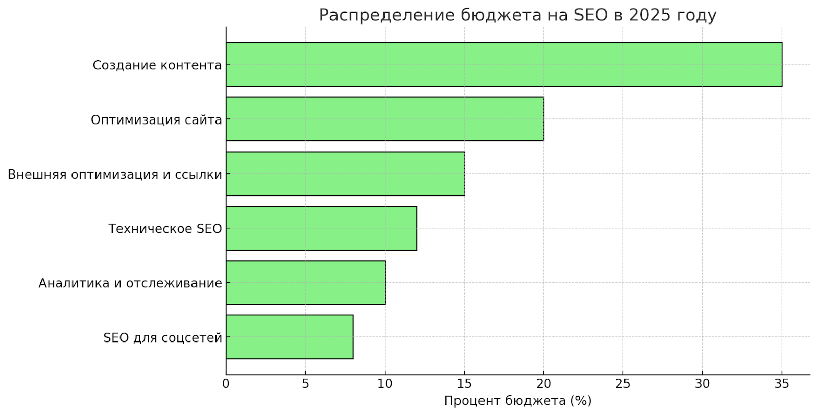 Чтобы обеспечить соответствие стандартам бренда, соответствие нормативным требованиям и целям компании, им потребуется поддержка других ресурсов. Обязательно учтите эти ресурсы в своем бюджете и целях, включая гибкость для непредвиденных потребностей, поскольку SEO быстро развивается.