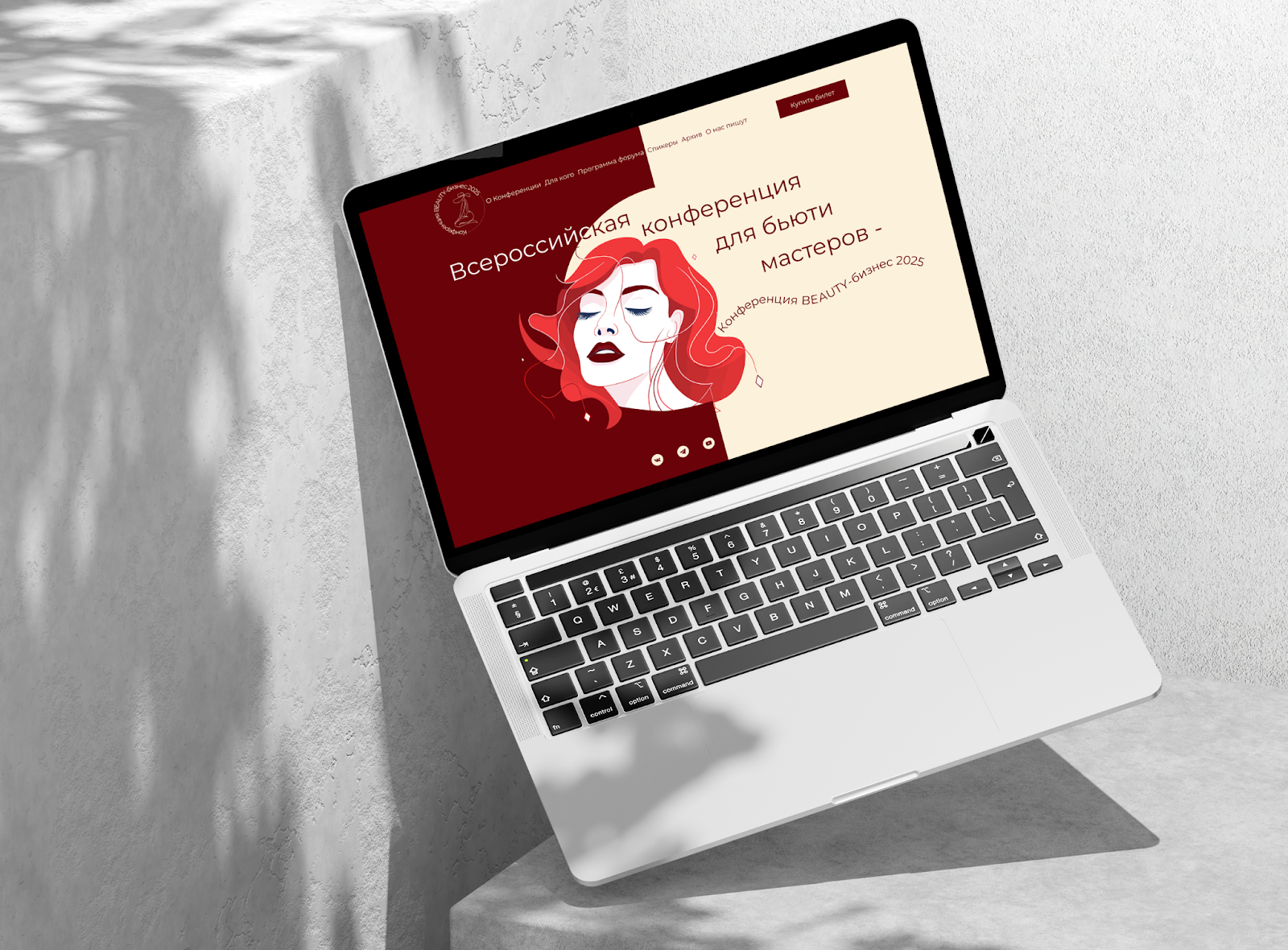 • Цветовая палитра строится на гармоничном сочетании глубокого бордового и теплого кремового оттенков, что символизирует страсть к красоте и профессионализм.